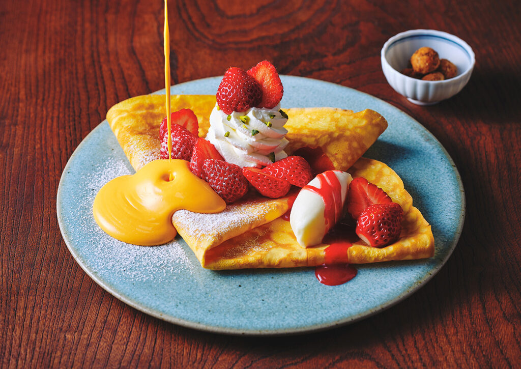 3月19日(木)より、西花見小路限定の喫茶メニューに「ご褒美クレープ あまおう」が登場。