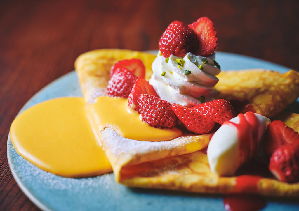 赤たまごを使った自慢のクレープに、鮮やかなあまおうを合わせました。
